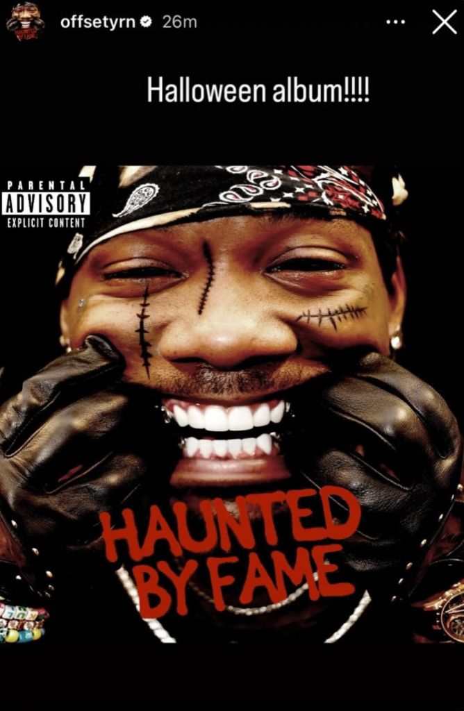 - Offset confirms a new album for Halloween release. He reveals the title Haunted By Fame today.