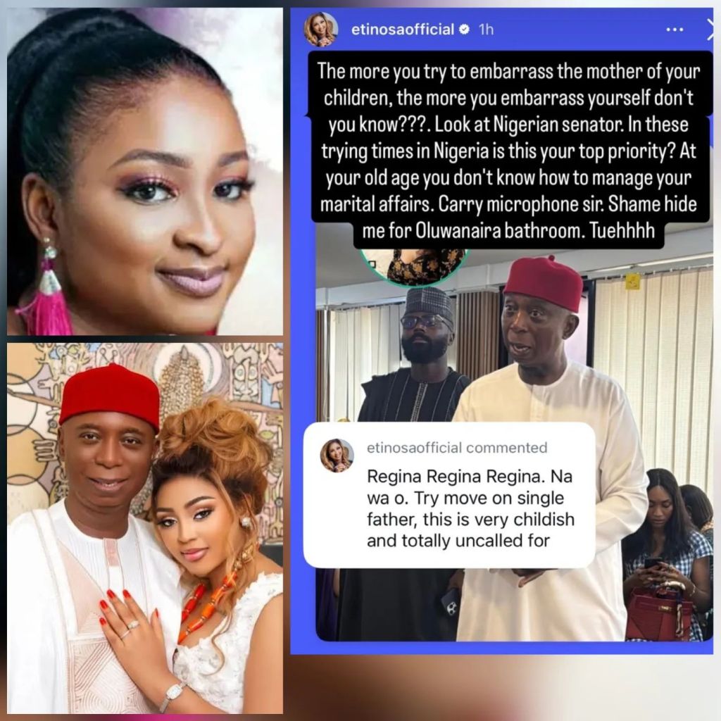 Actress Etinosa Idemudia criticised Senator Ned Nwoko (Chinedu Munir Nwoko) online. She said his public remarks about Regina Daniels are shameful and needless.
