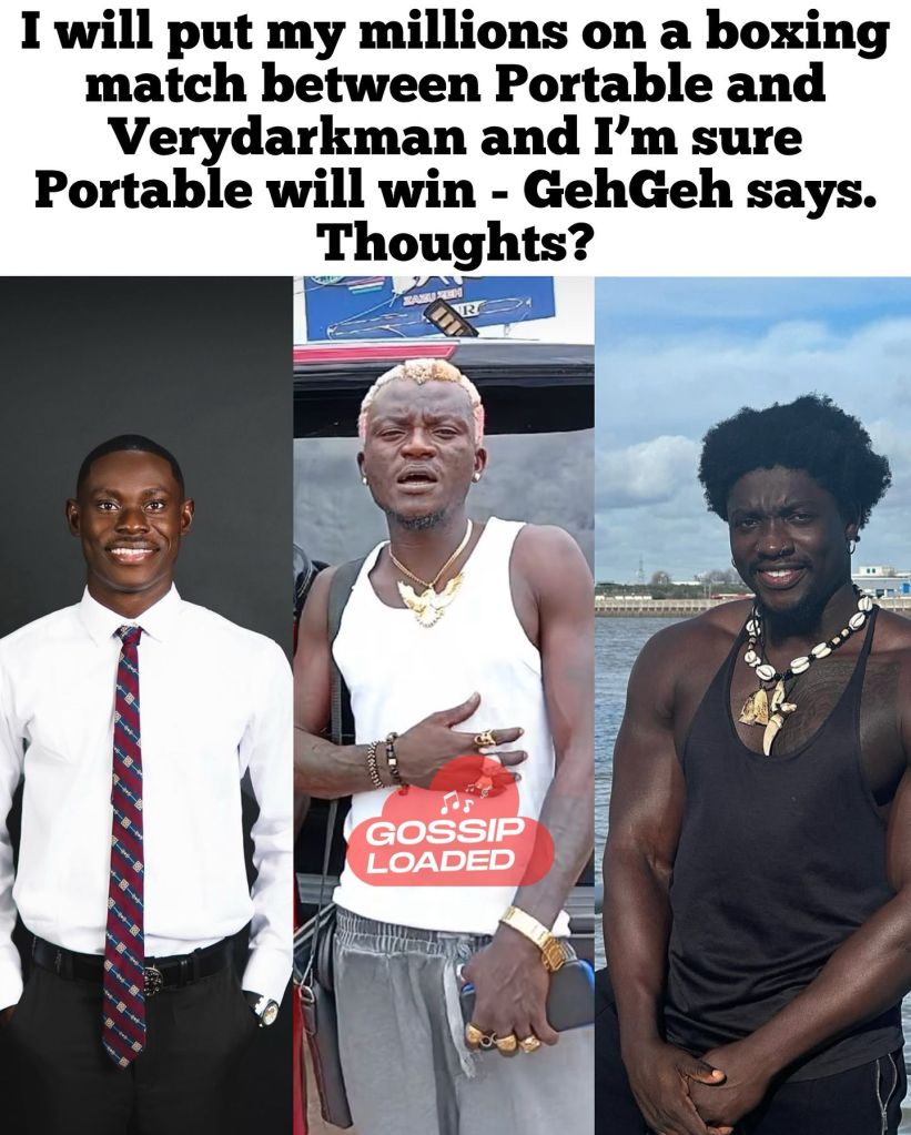 Content creator GehGeh has stirred talk with a fresh boxing take. He says singer Portable (Habeeb Okikiola) would beat activist VeryDarkMan (Martins Vincent Otse).