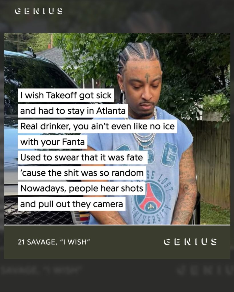 Savage references Juice WRLD and Takeoff with plain language. He names Von and the pain tied to some shootings. Those lines point to grief and to unresolved questions.