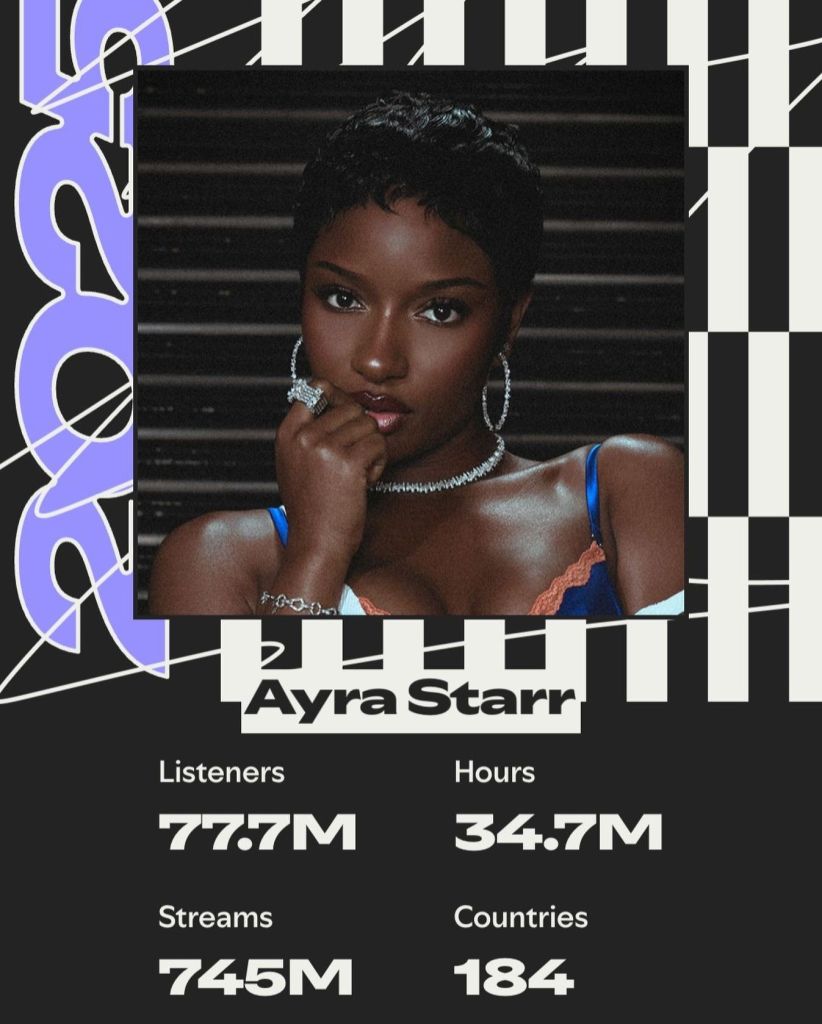 Streaming cards like this also highlight how far Afrobeats has travelled. African pop now reaches listeners in places that rarely saw Nigerian stars before. Every new data drop gives fans fresh bragging rights online.
