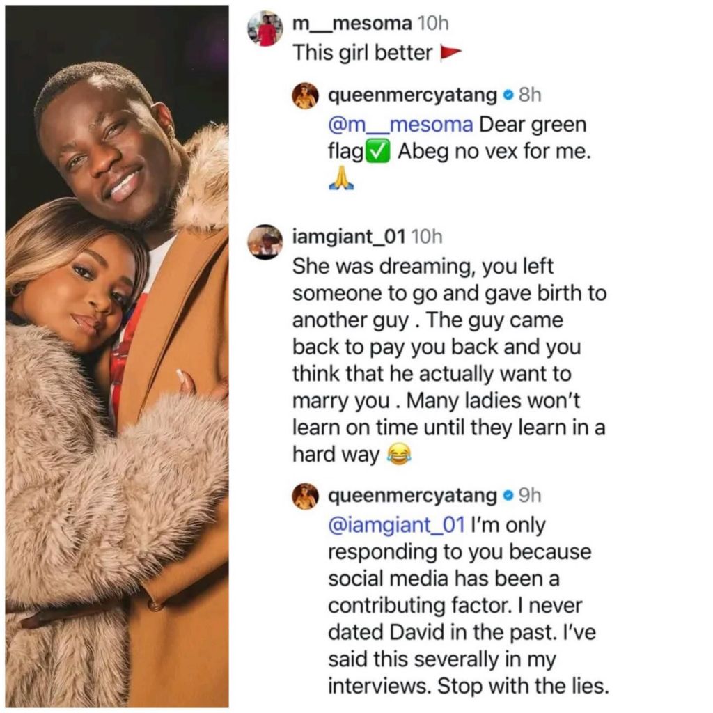 Former Big Brother Naija star Queen Mercy Atang has responded to fresh claims about her love life and marriage to estranged husband David Oyekanmi, telling critics to stop spreading false stories about her past.