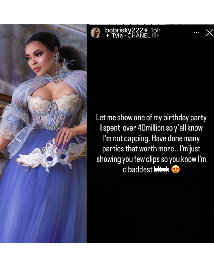 Bobrisky reminded followers that she has already thrown huge parties. She claimed one past birthday alone cost over forty million naira.