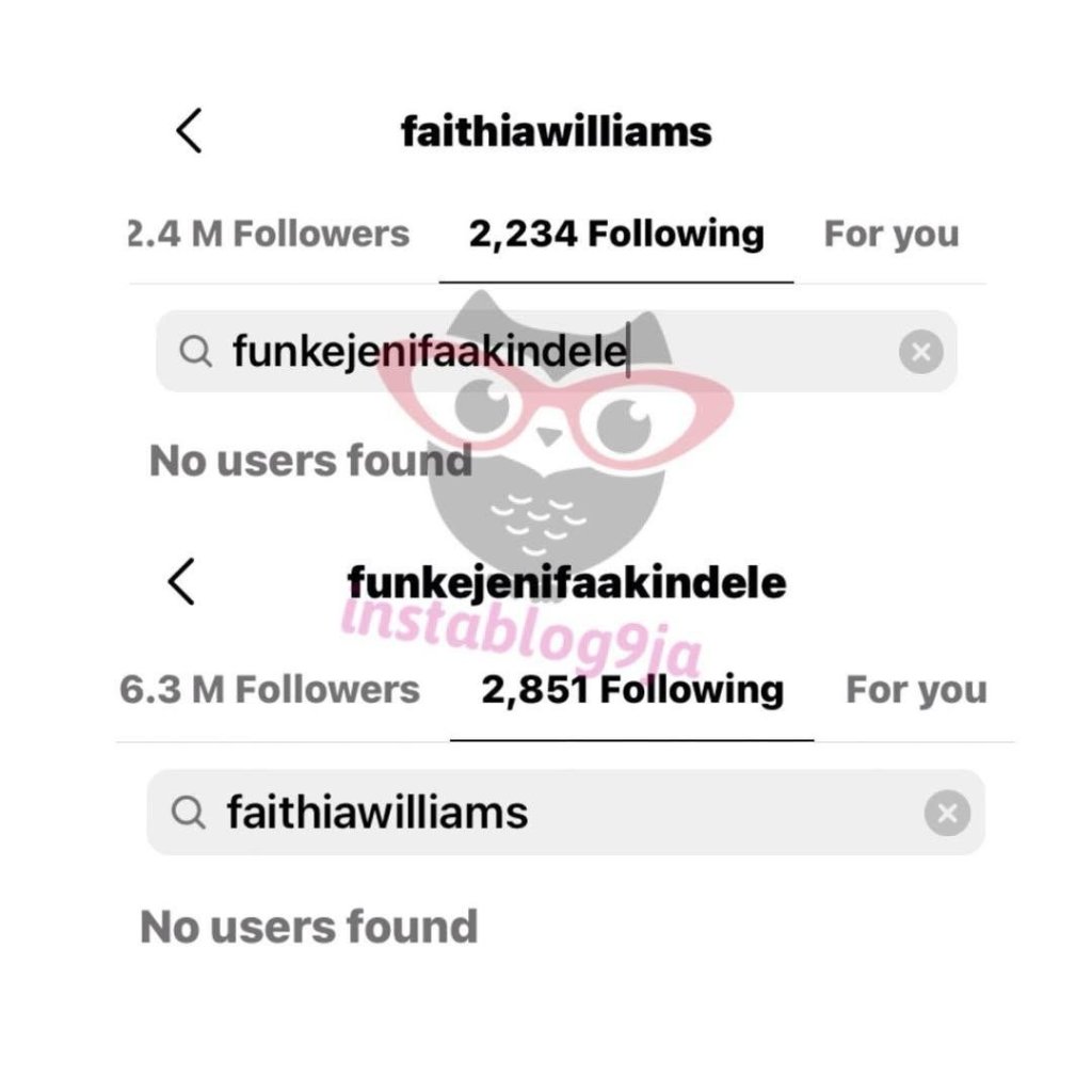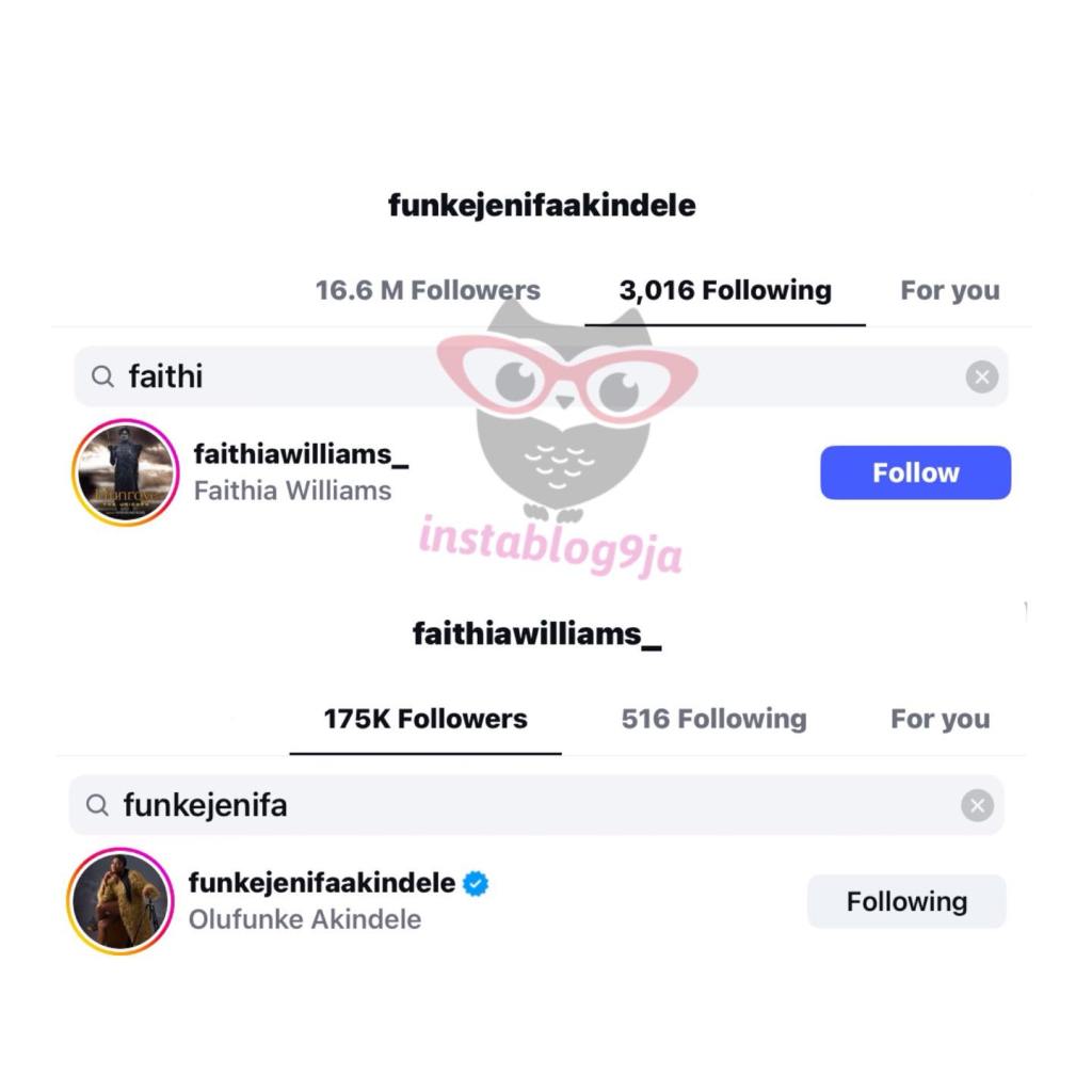 Fans noted Faithia’s account name and Funke’s follow lists changed within hours. Social screenshots circulating show the pair appearing in each other’s following lists again.
