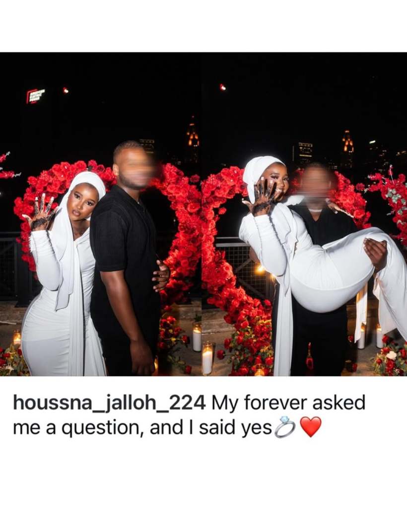 The pictures came from Instagram posts by user houssna_jalloh_224. In one post she marked three months as a married woman. She wrote, “Three months down, forever to go” in thanks.