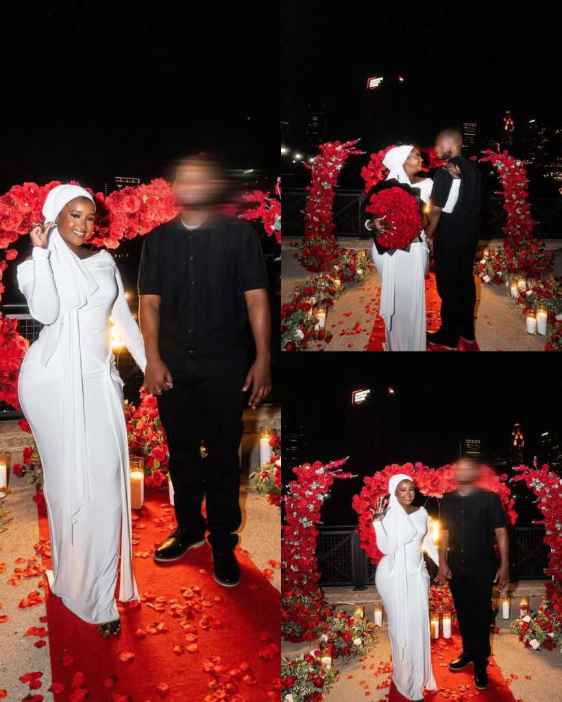 She posted more shots from her engagement night with roses and candles. In one frame her fiancé lifted her in his arms. She held out her hand to show the ring clearly.