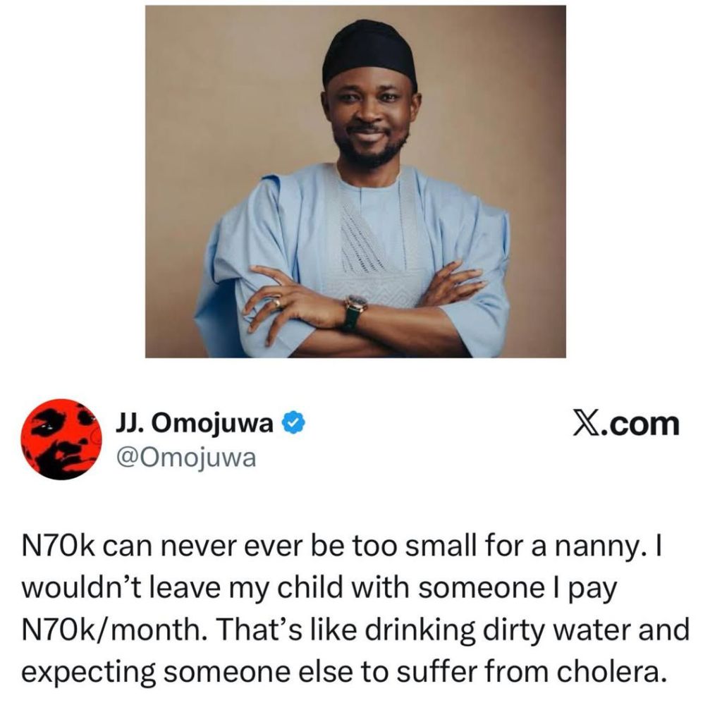Japheth Omojuwa made a sharp post about nanny pay on X this week. He said he would not leave his child with someone paid N70k monthly. His comment compared low pay to giving a child unsafe care.