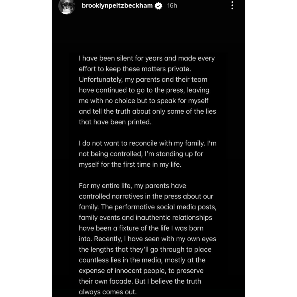These revelations paint a stark contrast to the perfectly curated image the family often presents. While the public recently saw David Beckham celebrates Inter Miami’s first MLS Cup win, Brooklyn describes a reality behind closed doors defined by control and “performative” relationships. He alleges that his parents and their team have planted lies in the media to preserve the “Brand Beckham” facade at the expense of innocent people.
