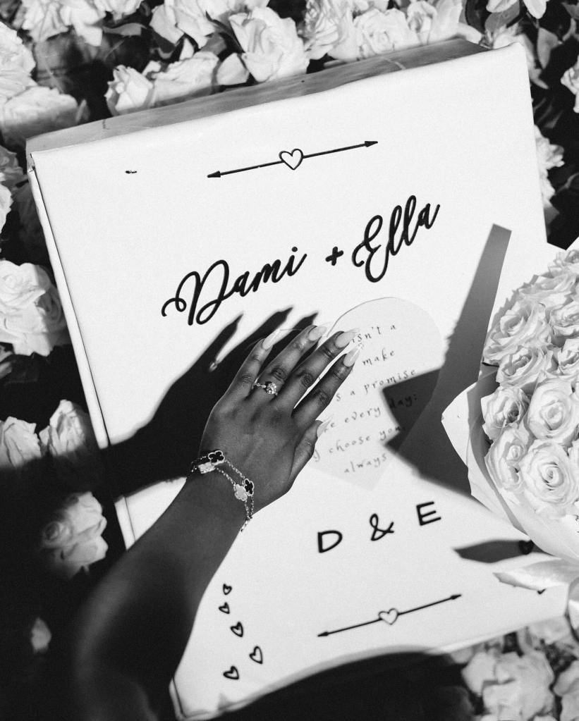 Another photo highlights the sparkling engagement ring on Ella’s finger as she covers her mouth in surprise.
