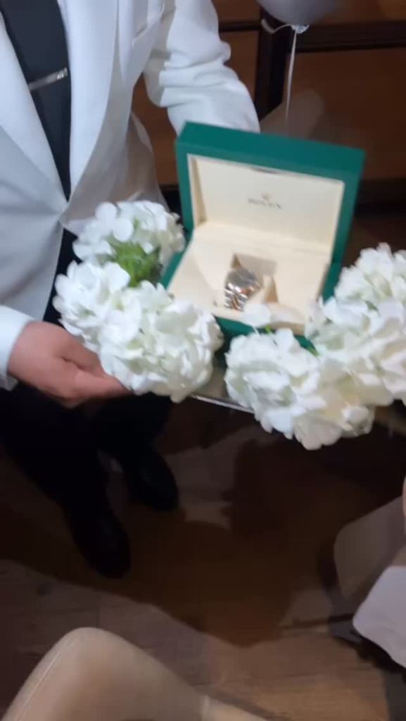 The highlight of the evening came when her partner, Tunmie, surprised her with a luxury gift. The star looked visibly excited as she unboxed a classic Rolex watch during their dinner.