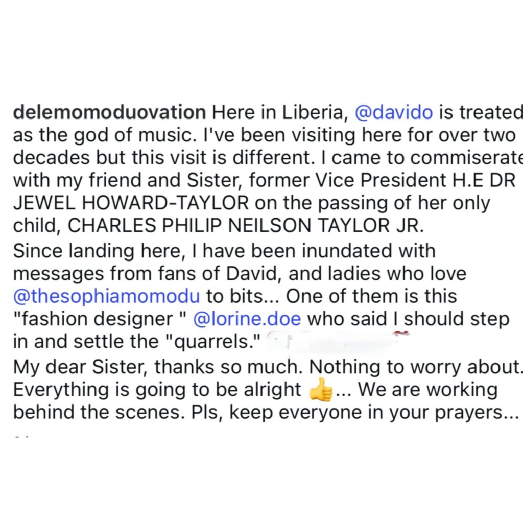 Momodu shared a post from Liberia claiming fans asked him to settle the ongoing dispute. He reassured followers that a resolution was currently in progress through private channels. He stated that fans in Liberia had reached out to him personally.