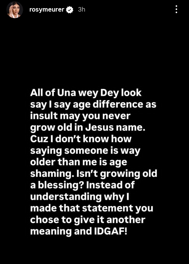”All of Una wey Dey look say I say age difference as insult may you never grow old in Jesus name. Cuz I don’t know how saying someone is way older than me is age shaming,” the actress shouted.