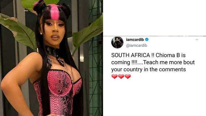 South Africans have reacted so angrily after they saw a tweet by Cardi B saying she (Chioma B) will be coming into the country and demands to know more about them “SOUTH AFRICA !! Chioma B is coming !!!! Teach…