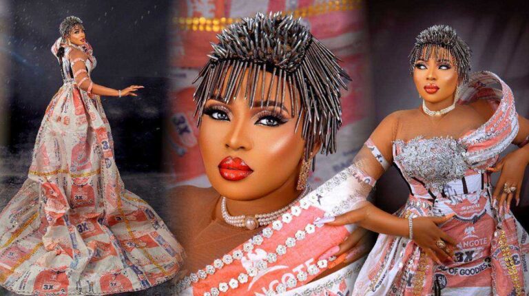 Nigerian reality television star, Cindy Nkeiru Okafor has stunned the Internet with never-seen-before outfit, made entirely from Dangote cement bag and a hair made with nail. Cindy shared the outfit with the general public via some photos posted via her…