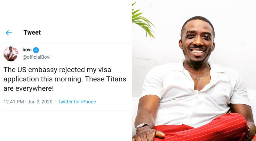 Comedian Bovi accuses Titans for his visa rejection at U.S Embassy ENTERTAINMENT Jan 2, 2020 Read More