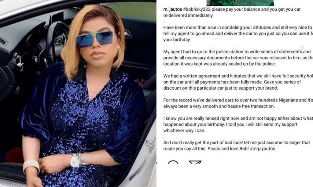 MJ Autos exposes Bobrisky, says the car he claims gifted by his boyfriends on his birthday was fake ENTERTAINMENT Sep 2, 2019 Read More